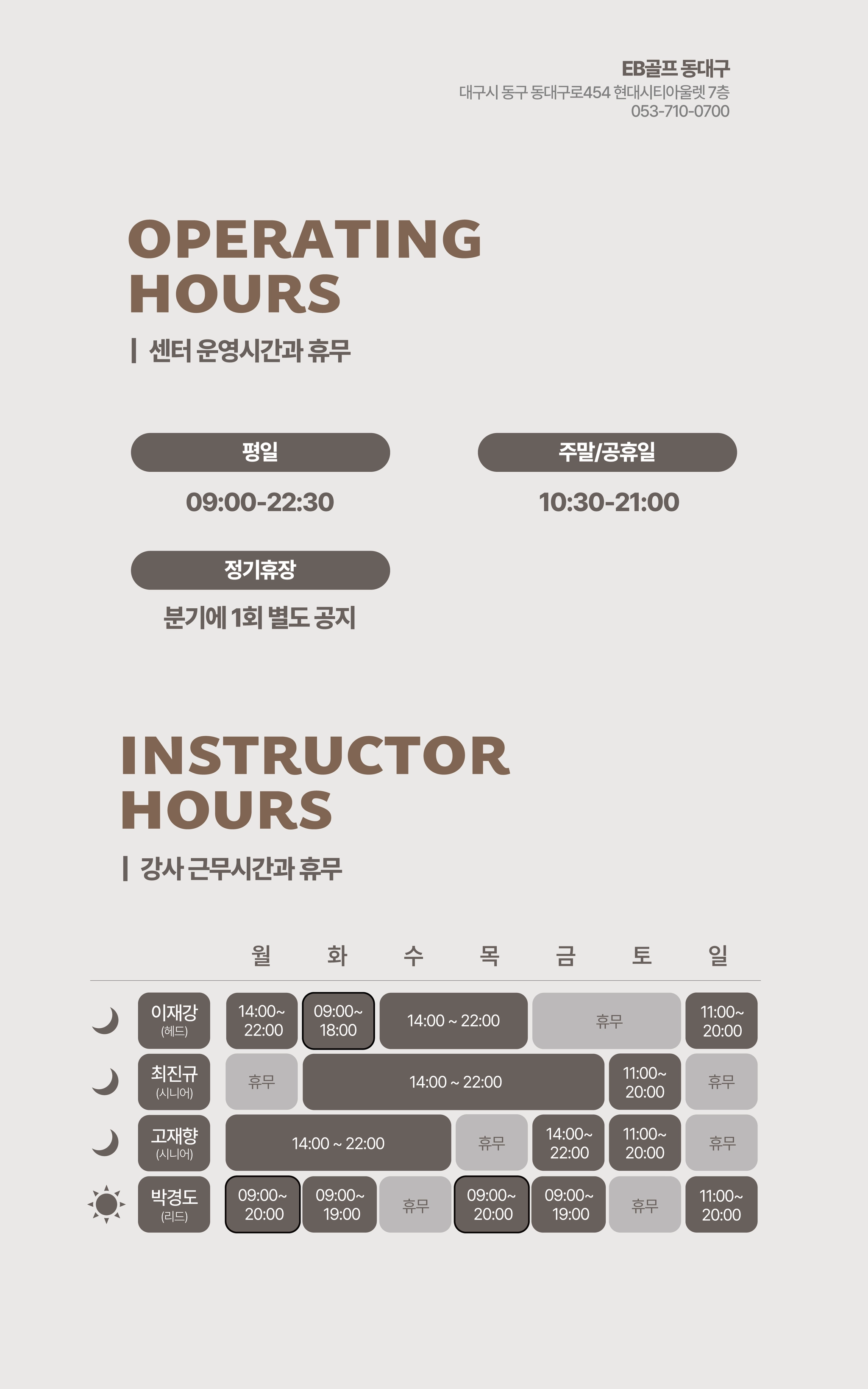 EB골프 동대구센터 영업시간/레슨 시간표