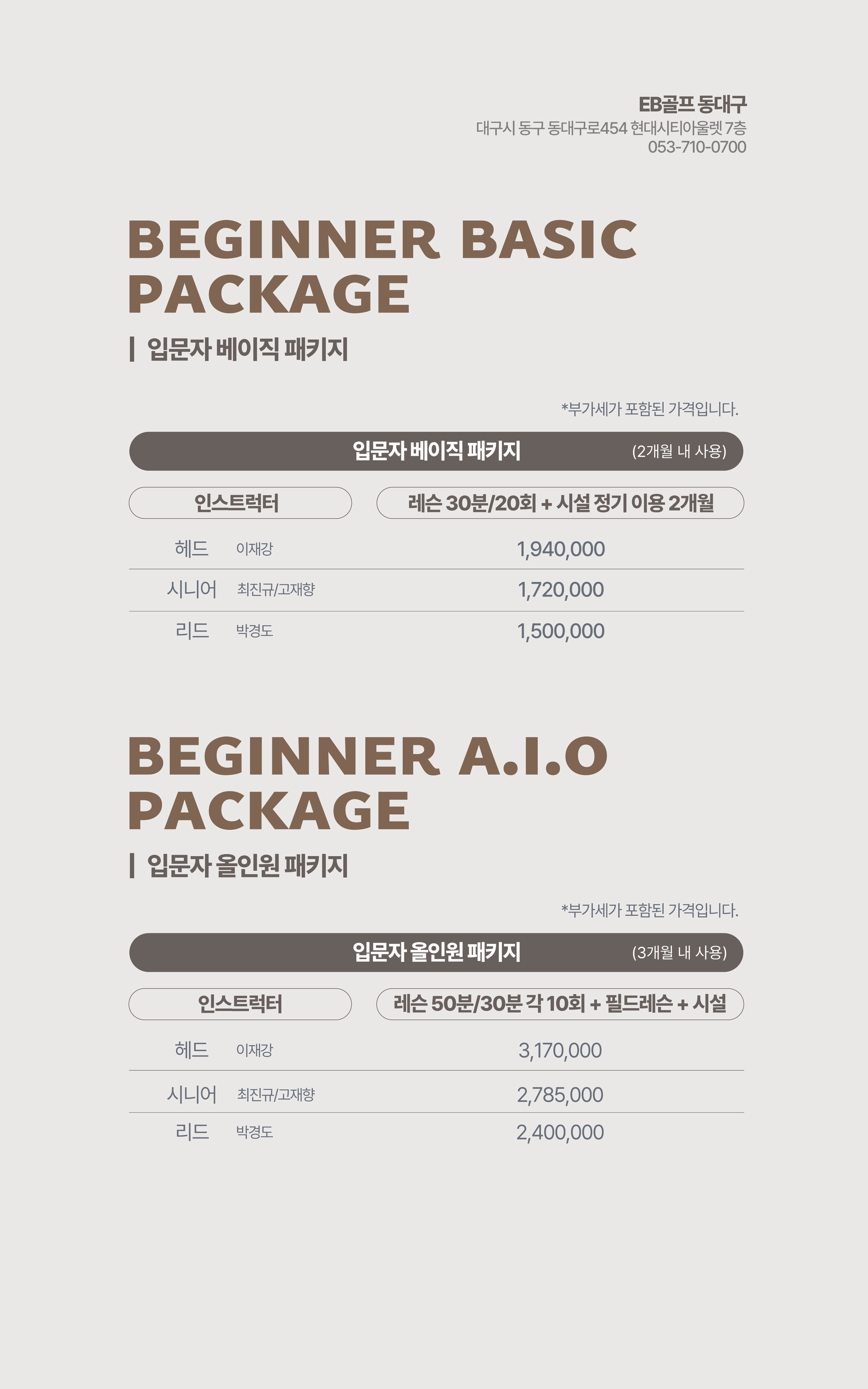 EB골프 동대구센터 입문자 베이직/올인원 패키지 가격표
