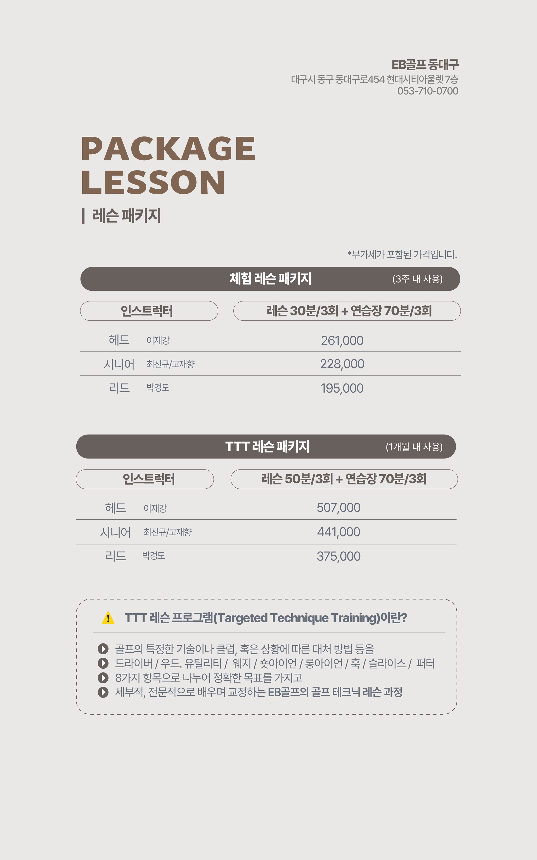 EB골프 동대구센터 패키지 레슨 가격표